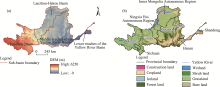 Fig. 1 Topography (a) and land use cover (b) of the Yellow River Basin, China. The figure of the Yellow River Basin is based on the standard map (GS(2024)0650) of the National Geomatics Center of China (https://www.ngcc.cn/), and the boundary of the standard map has not been modified. DEM, digital elevation model.