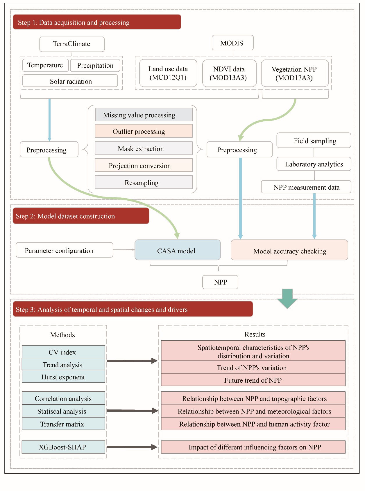| Multi-source remote sensing and machine learning reveal spatiotemporal variations and drivers of NPP in the Tianshan Mountains, China |