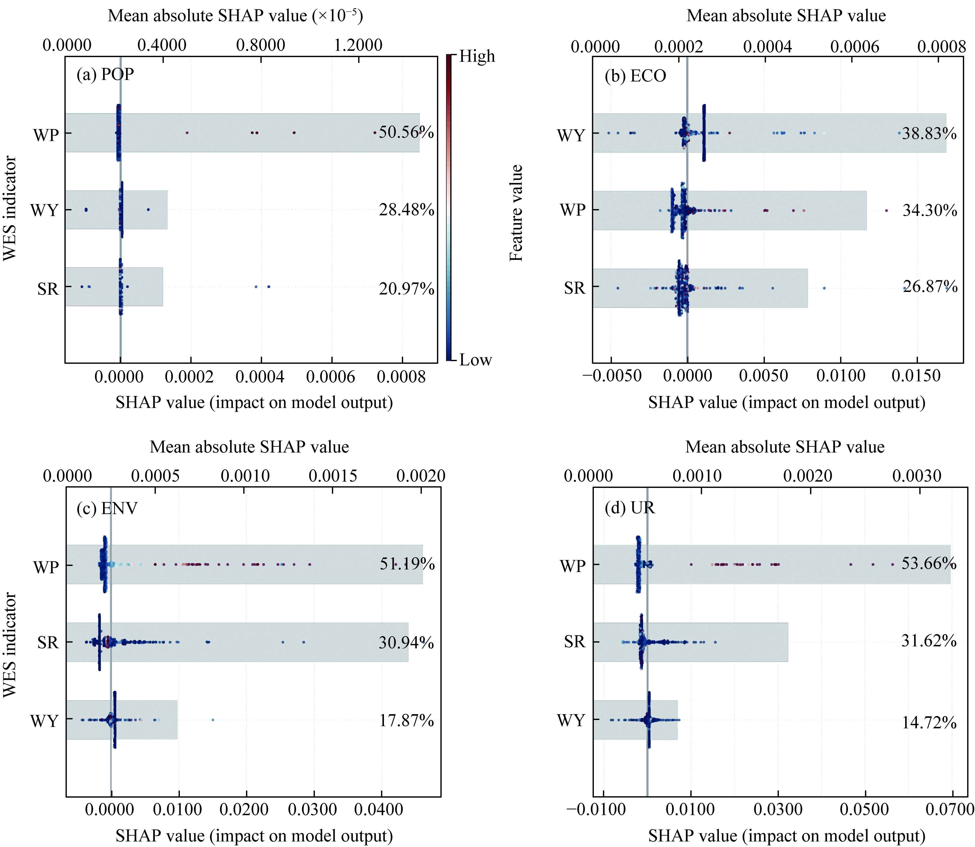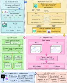 Abstract Within the context of global climate change and rapid urbanization, increasing urban resilience (UR) is especially important in the arid region of Northwest China (ANC), where fragile ecosystems and an uneven water distribution create significant sustainability challenges. In this study, a coupled UR-water ecosystem services (WESs) framework was developed on the basis of 1-km resolution remote sensing data for the 2000-2020 period obtained from the Landsat series, Defense Meteorological Satellite Program (DMSP)/Operational Linescan System (OLS), and Global Precipitation Measurement (GPM), among other sources. Within the framework, the Integrated Valuation of Ecosystem Services and Tradeoffs (InVEST) model was incorporated to provide a WES indicator system. Moreover, entropy weighting was employed to quantify both UR and WES indicators; the coupling coordination degree (CCD) model was used to measure the coupled relationship between UR and WESs; an extreme gradient boosting (XGBoost)-SHapley Additive exPlanations (SHAP) interpretation approach was adopted to identify key drivers and underlying mechanisms; and Geographically Weighted Regression (GWR) was applied to capture spatial distribution characteristics of major driving factors. The results indicated that UR steadily increased from 4.60×10-3 to 10.24×10-3, whereas WESs followed an inverted V-shaped trend, with a peak value observed in 2010 (11.84×10-3). The CCD remained consistently low (mean: 0.0166-0.0246) and exhibited considerable spatial heterogeneity. Notably, the degree of coordination was greater in the oasis and mountain core areas but significantly lower at desert areas. XGBoost-SHAP model analysis revealed six key drivers influencing various states of the CCD between UR and WESs systems. The contributions of these factors could be ranked as follows: water yield (WY; 24.30%)>farmland area per capita (FP; 21.10%)>gross domestic product (GDP) per capita (GDPC; 19.00%)>soil retention (SR; 14.90%)>population density (PD; 5.42%)>water purification (WP; 4.40%). In contrast, in UR system, WP (53.66%) and SR (31.62%) served as the dominant drivers. Moreover, the dominant drivers shifted from a combination of natural and socioeconomic factors in State I (sustainable high resilience) to primarily socioeconomic factors in State III (unsustainable low resilience). SR and WP exerted positive moderating effects, whereas socioeconomic factors such as GDPC and PD exerted inhibitory effects on the coordination relationship. This research highlights that UR in the ANC region is limited mainly by water scarcity, weak feedback loops, and spatial variability, emphasizing the need for tailored intervention strategies.