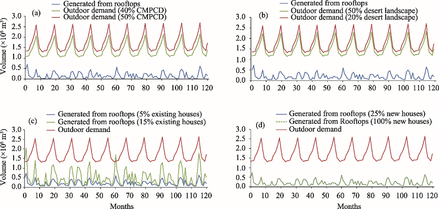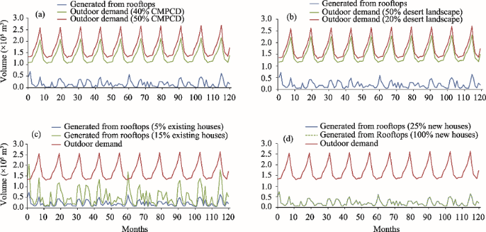 (2)The efficacy of RRWH systems are highly sensitive to the climate conditions, the number of existing households with RRWH systems, and the seasonal variation of the outdoor water demand.