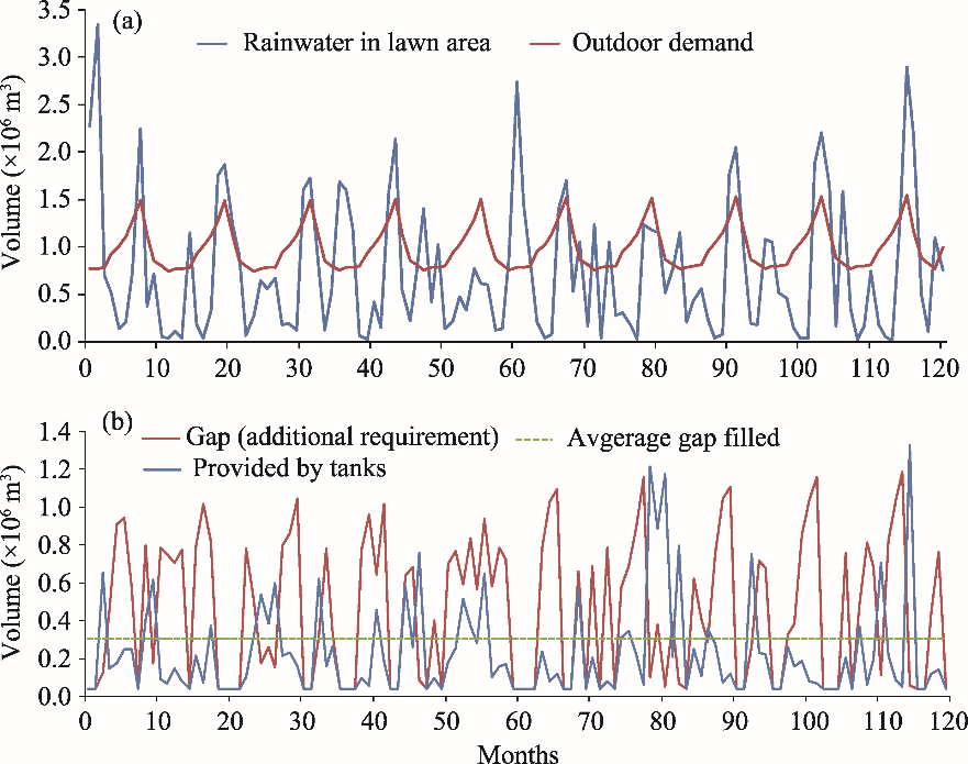 (4)In arid regions, small rooftop rainwater barrels (e.g., 1.0-2.0 m3) can potentially store a significant percentage of the monthly rainwater, which can effectively be used in the following months with less rainfall and higher demands.